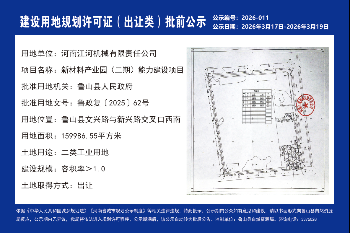 鲁山县、乡、村三级普惠养老服务体系建设项目(新集乡) 《出让类建设用地规划许可证》 批前公示