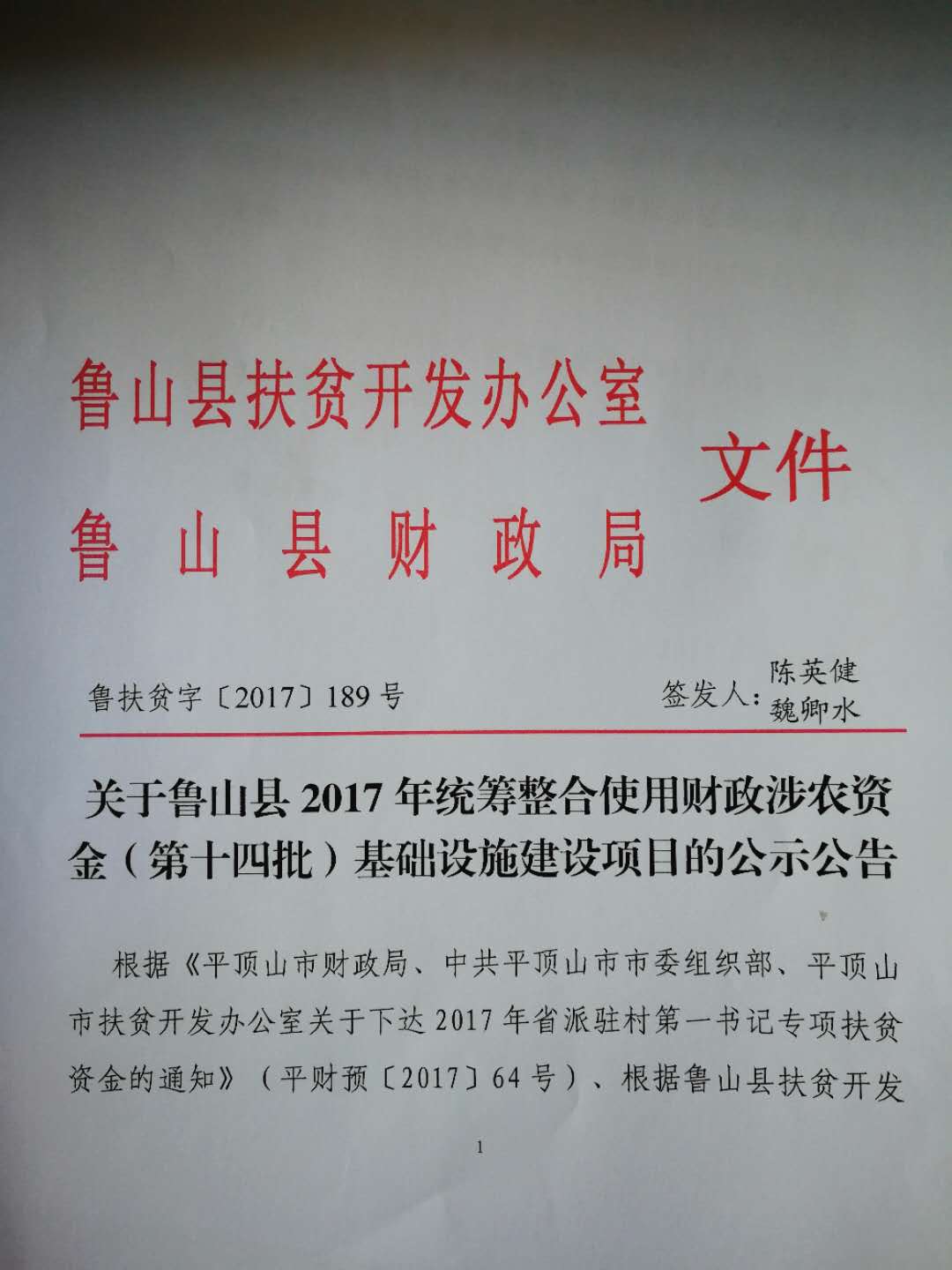 鲁山县2017年整合十四批财政扶贫资金基础设施项目备案表汇总表.xls