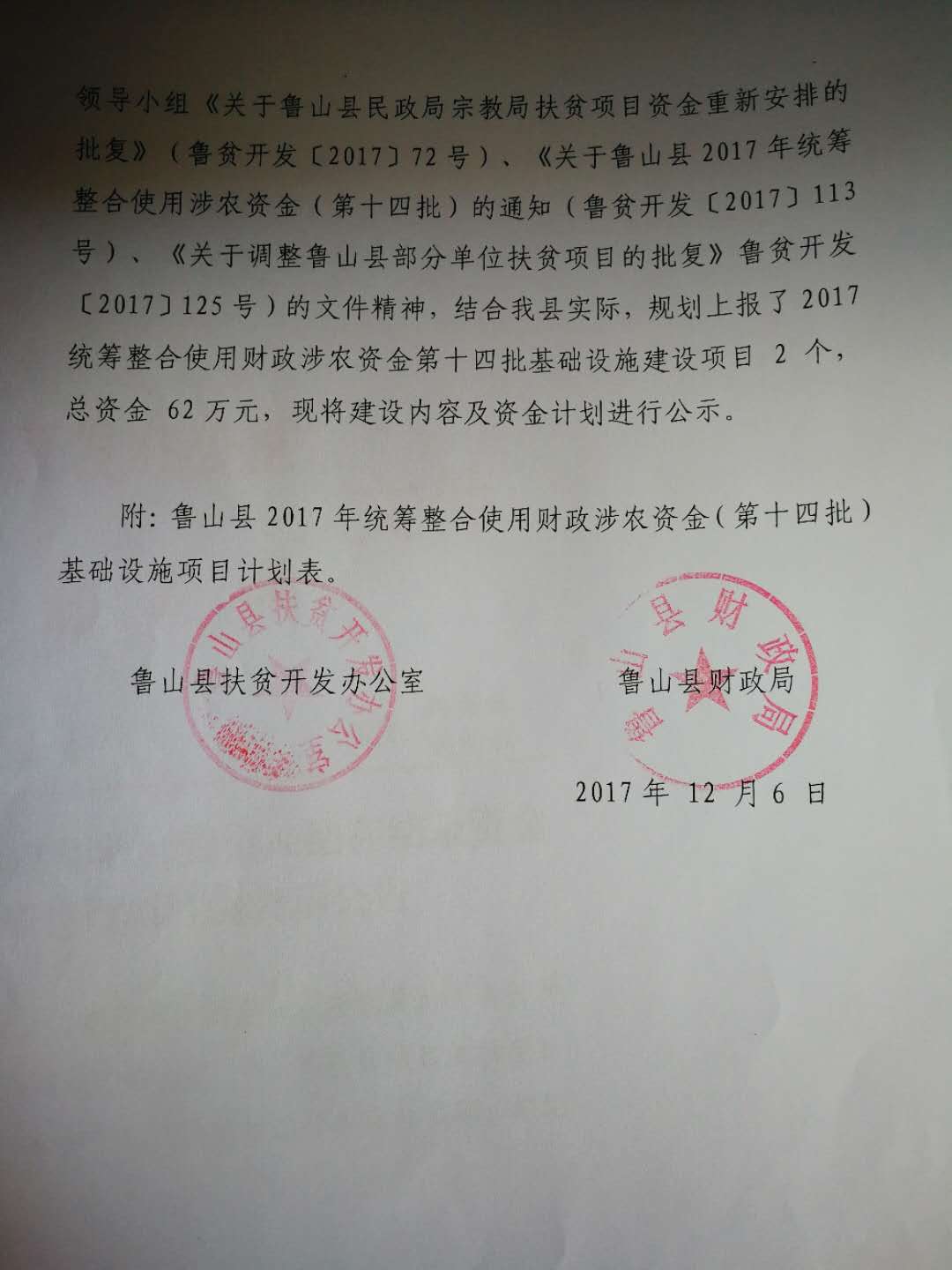 2017年统筹整合(第十四批)基础设施项目公示公告