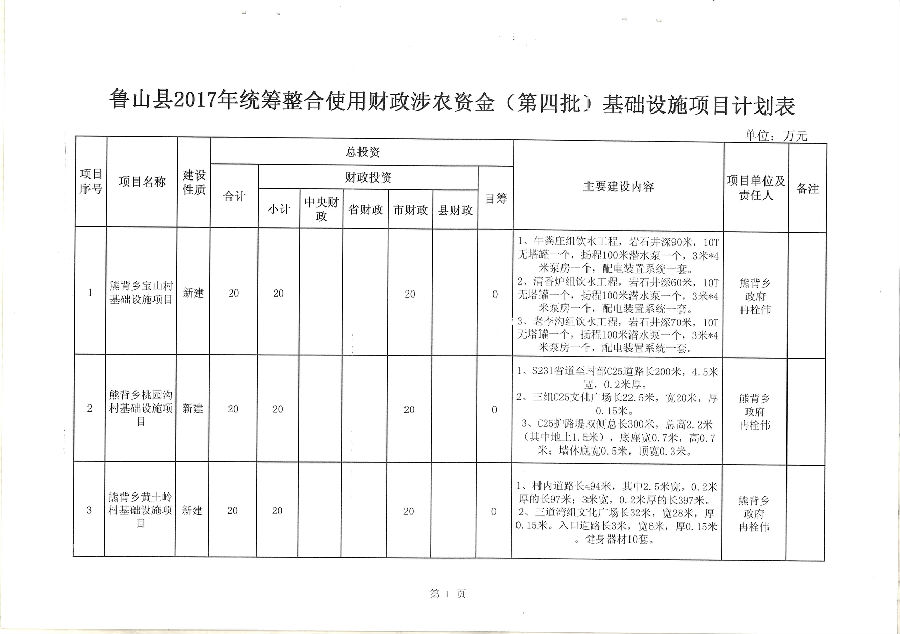 2017年统筹整合财政资金(四批)基础设施项目实施方案的公示公告(一)