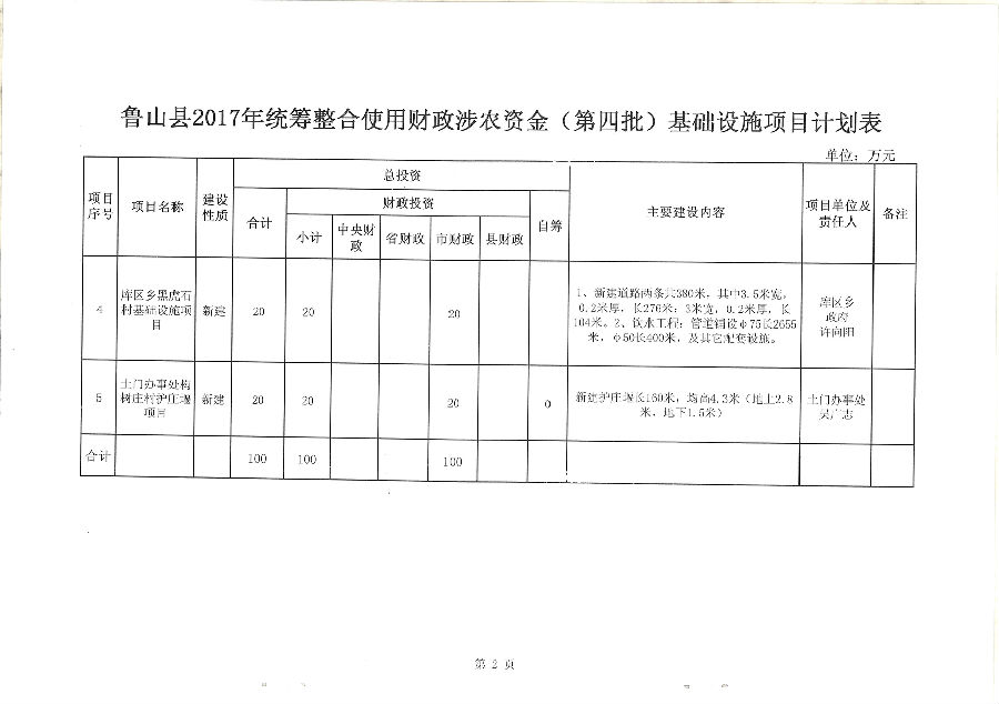 2017年统筹整合财政资金(四批)资金基础设施项目实施方案的公示公告(二)