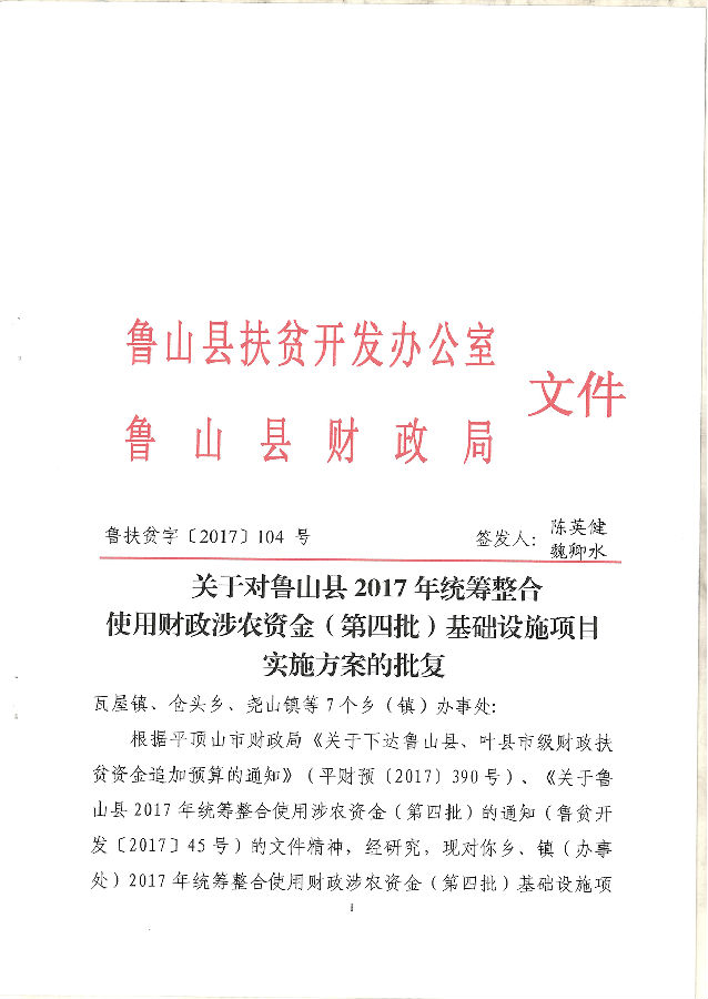 2017年统筹整合使用财政资金(五批)基础设施项目实施方案的公示公告