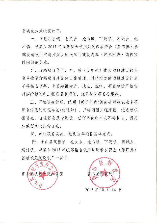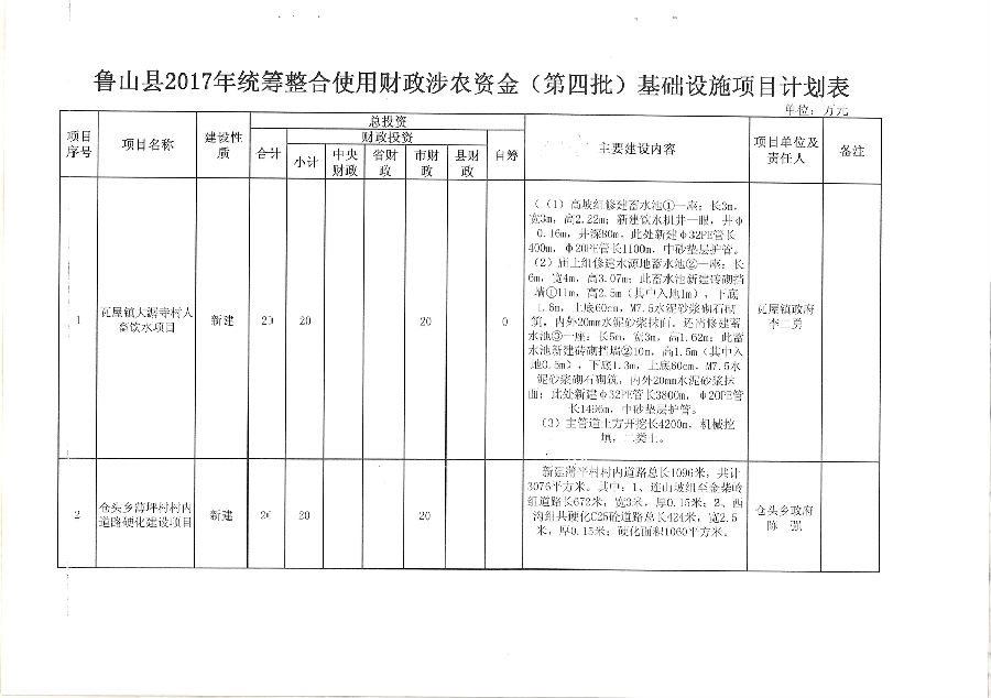 2017年统筹整合财政资金(四批)资金基础设施项目实施方案的公示公告(二)
