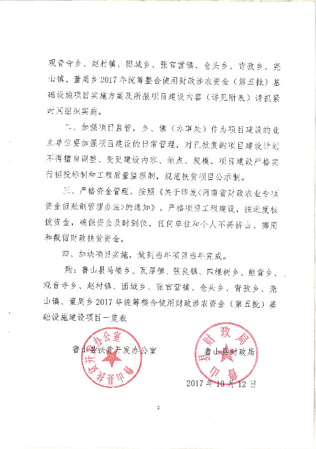 鲁山县2017年整合(五批)财政扶贫资金基础设施项目备案表汇总表.xls