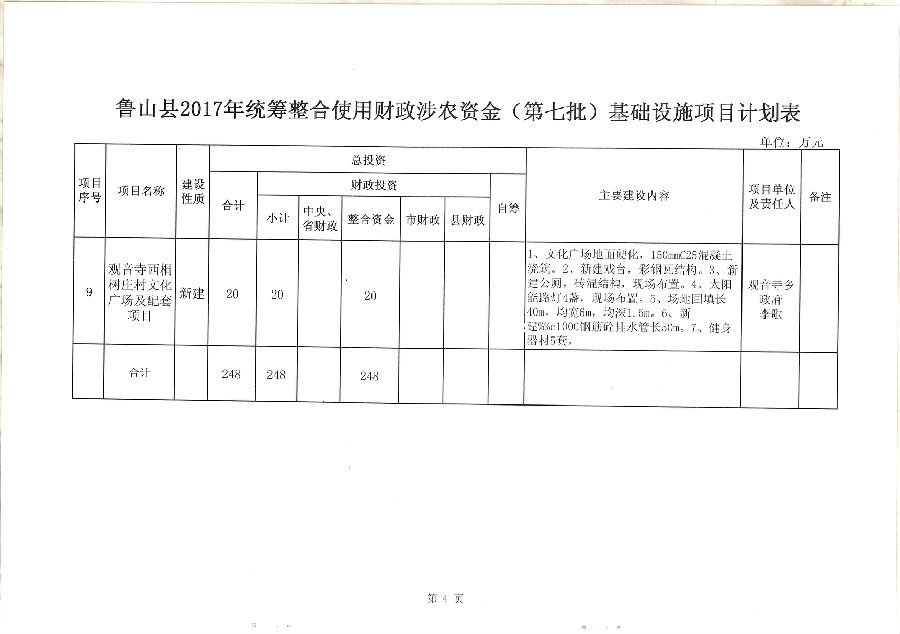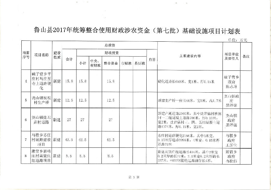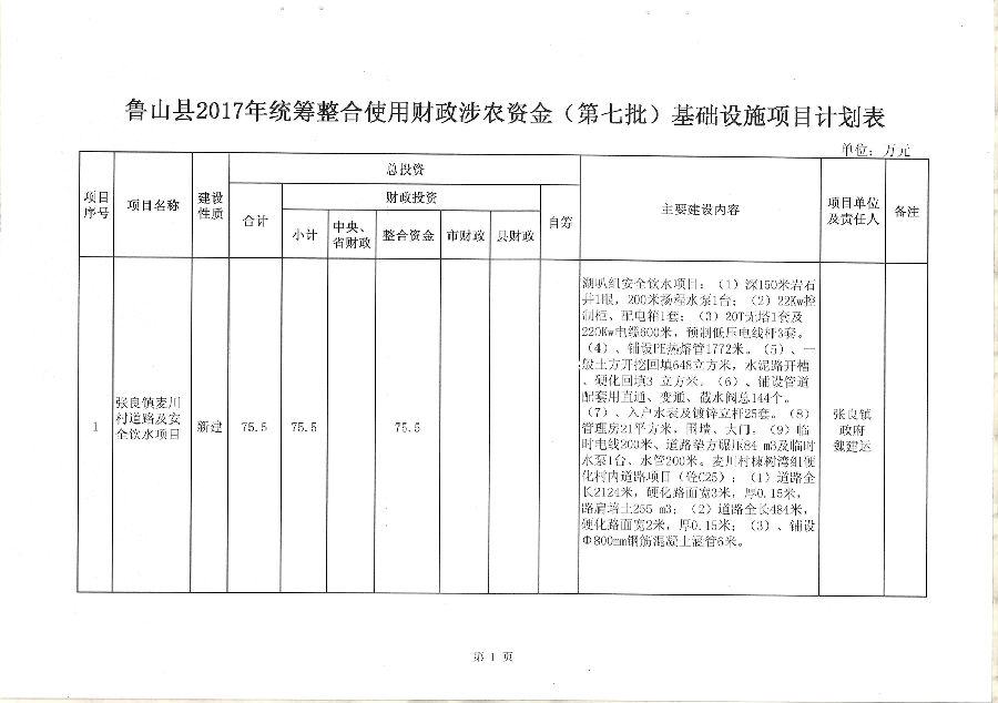 2017年统筹整合使用财政资金(七批)基础设施项目实施方案的公示公告