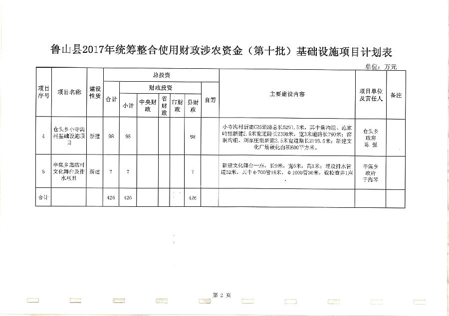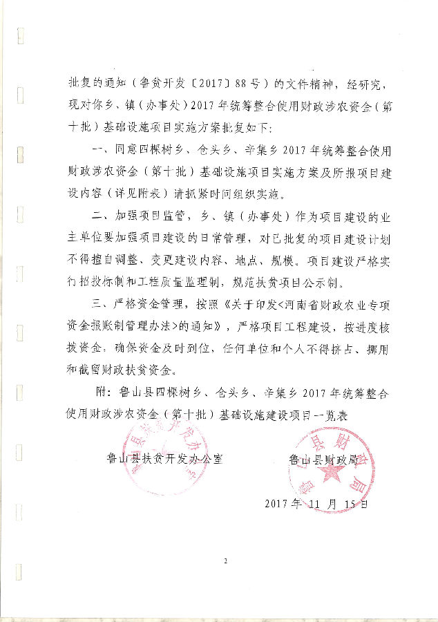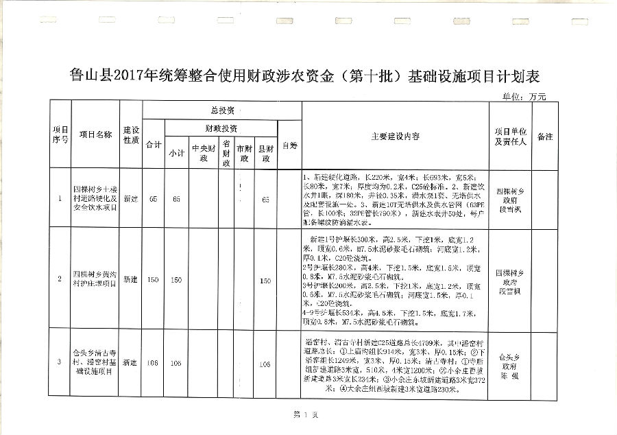 2017年统筹整合使用财政涉农资金(十批)基础设施项目实施方案批复的公示公告(二)