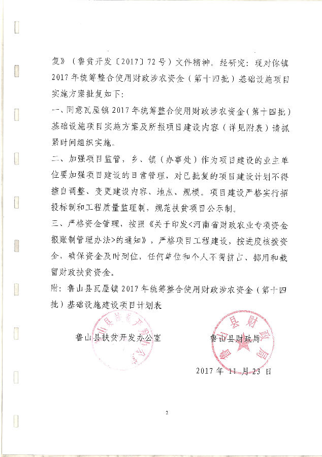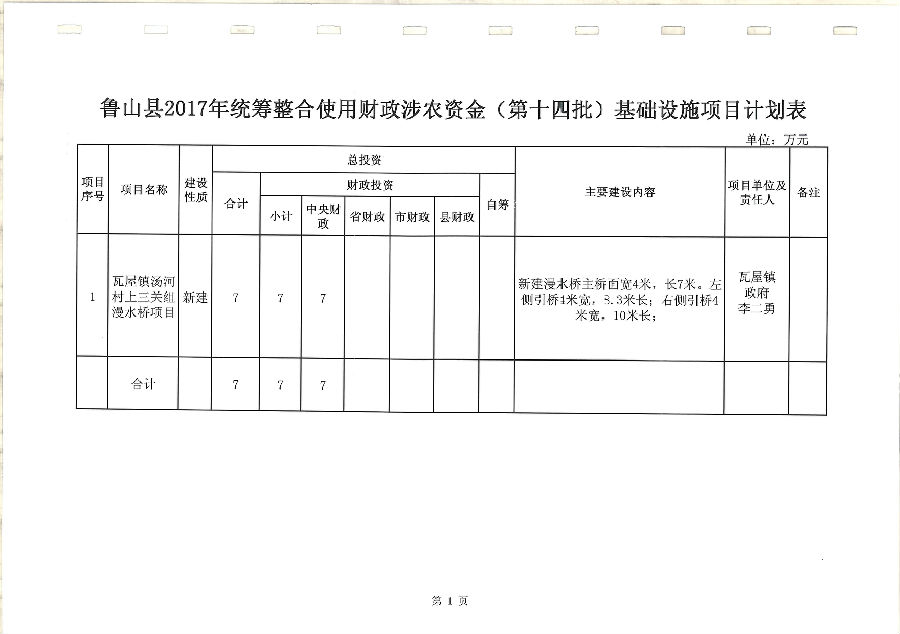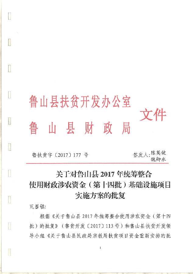 2017年统筹整合使用财政涉农资金(第十四批)基础设施项目实施方案批复的公示公告(一)