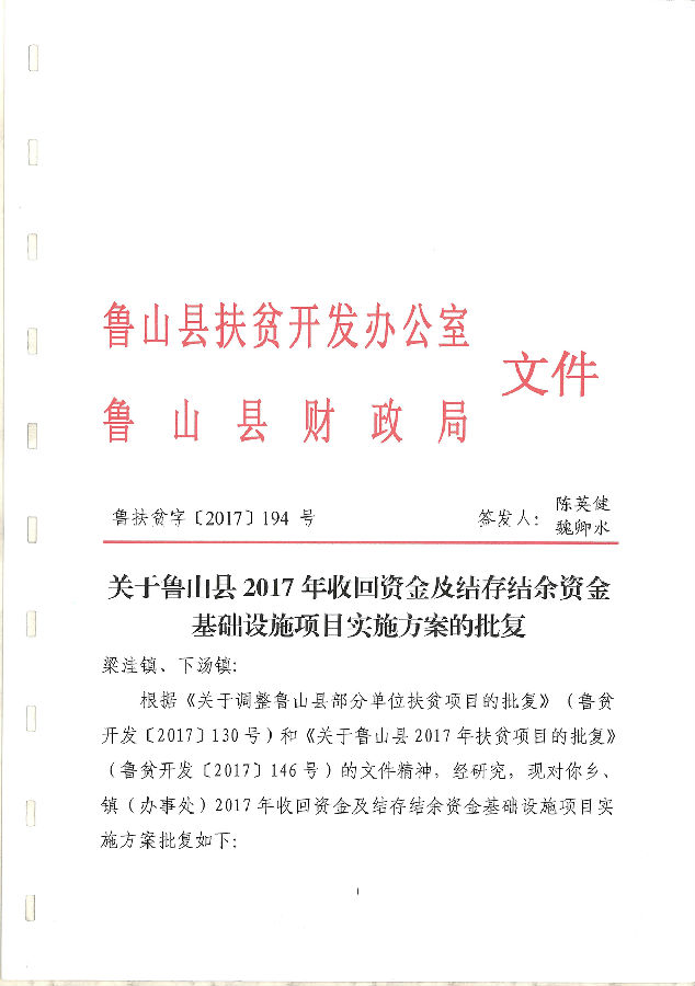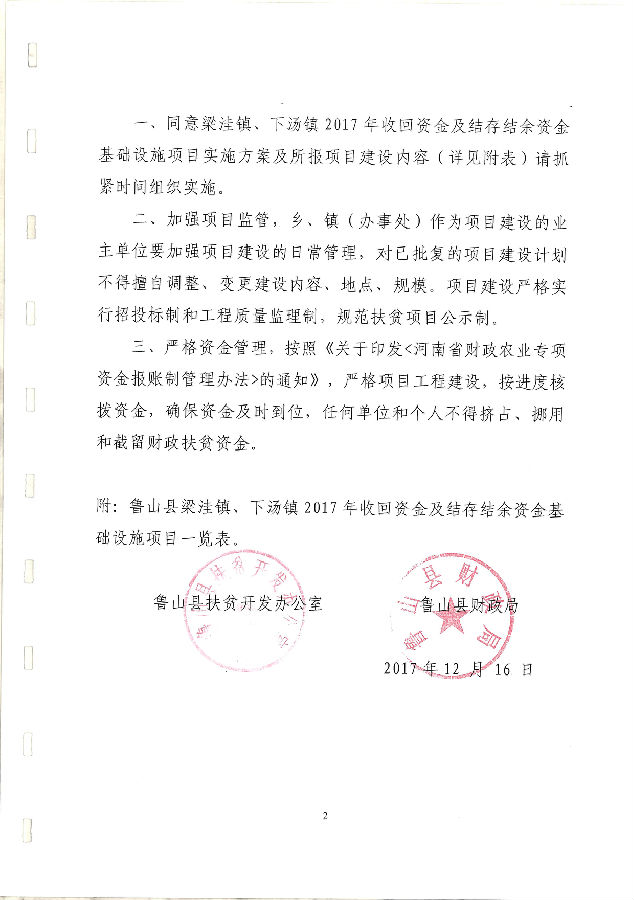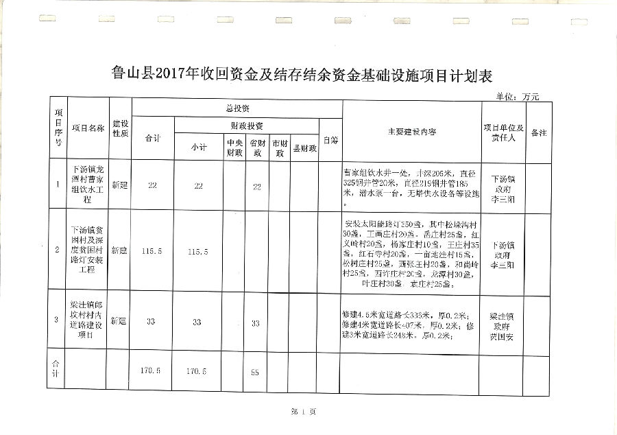 2017年收回存量资金及结存结余资金基础设施项目实施方案批复的公示公告(一)