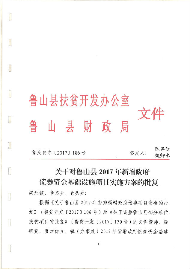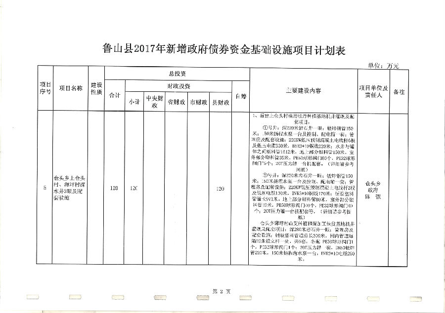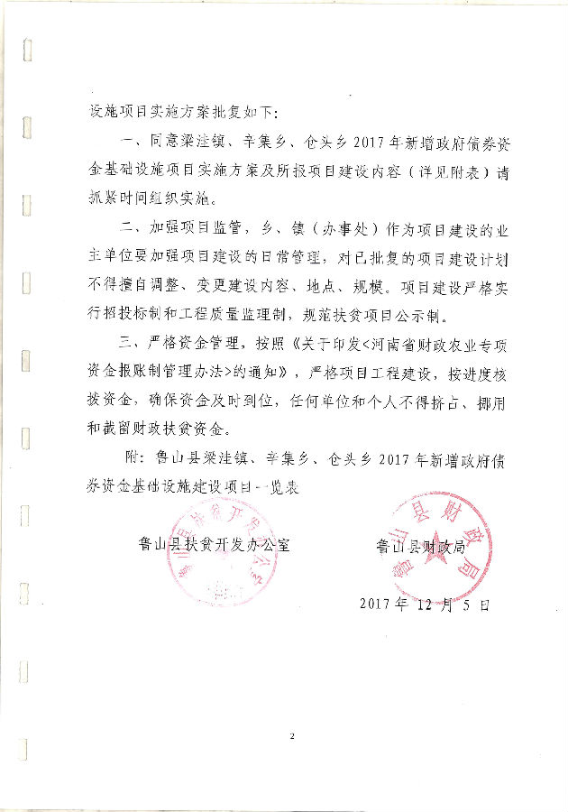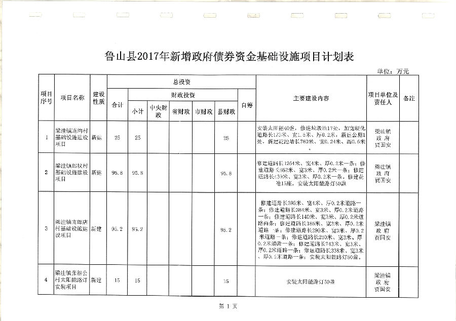 2017年新增政府债券资金基础设施项目实施方案批复的公示公告(二)