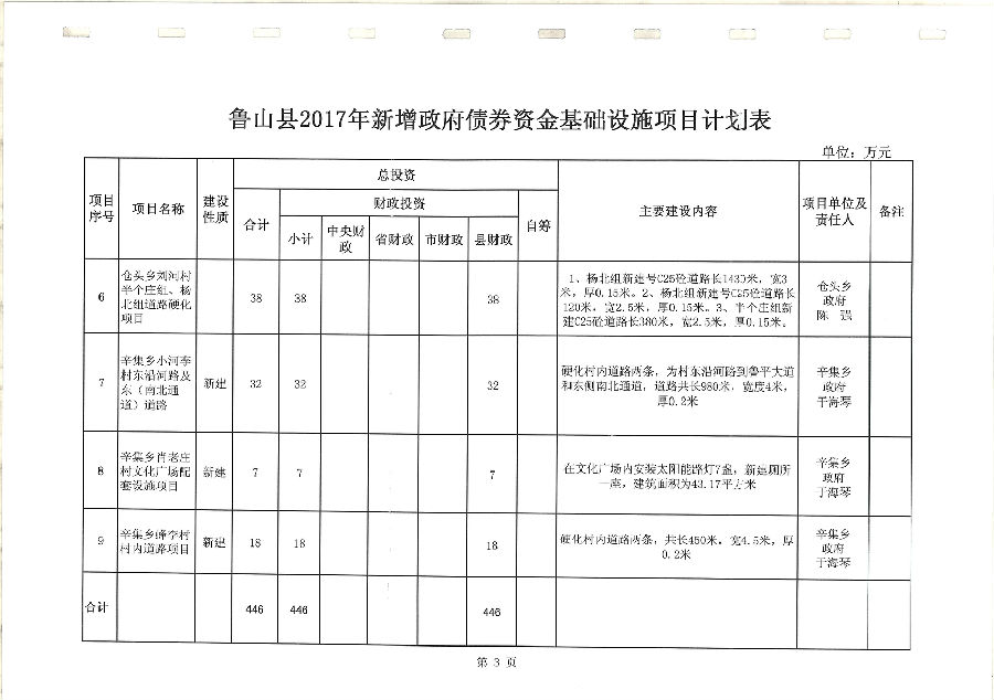 2017年新增政府债券资金基础设施项目实施方案批复的公示公告(三)