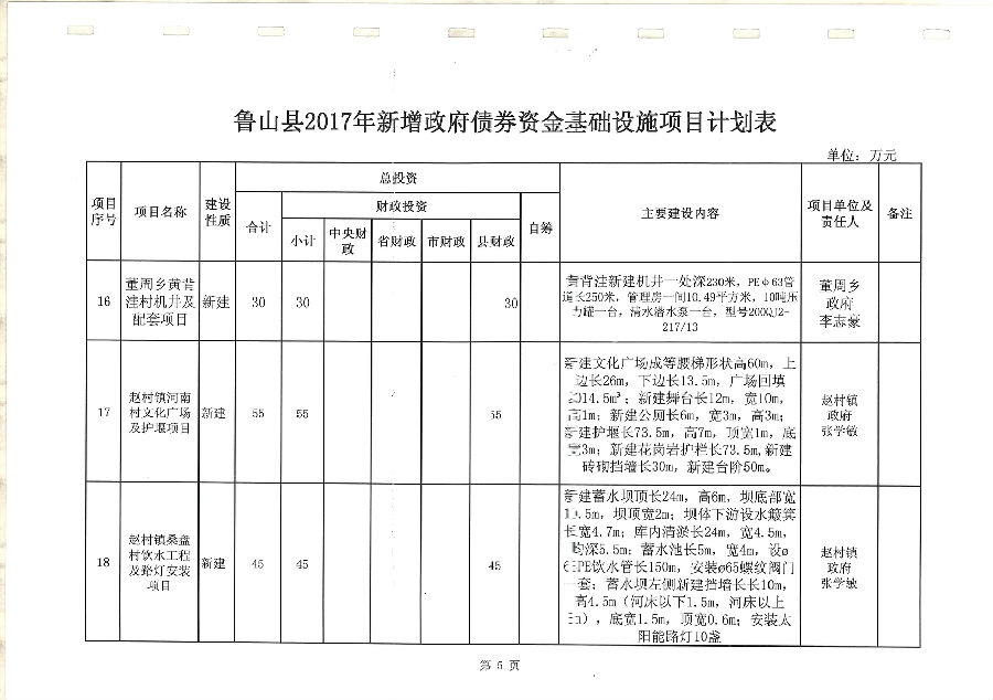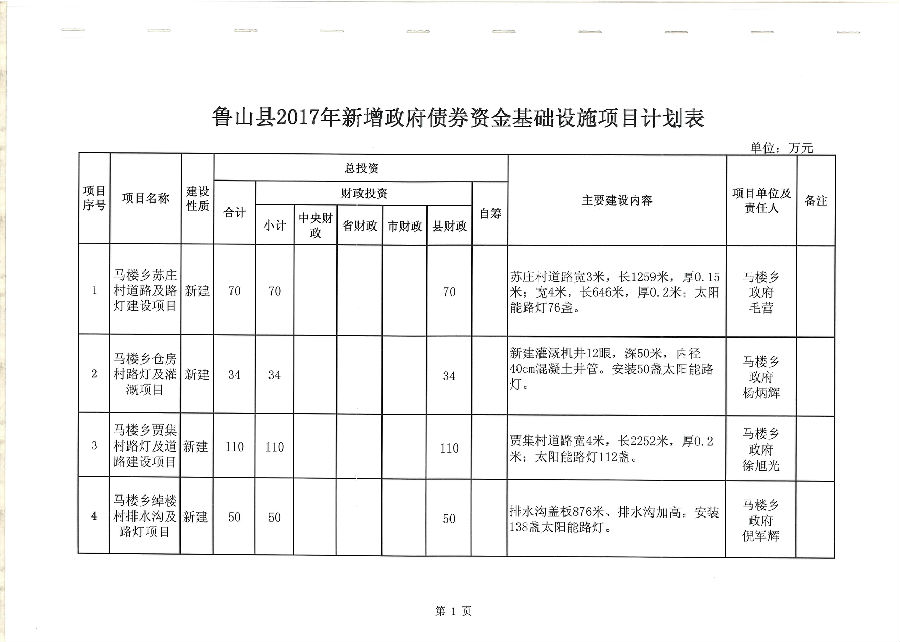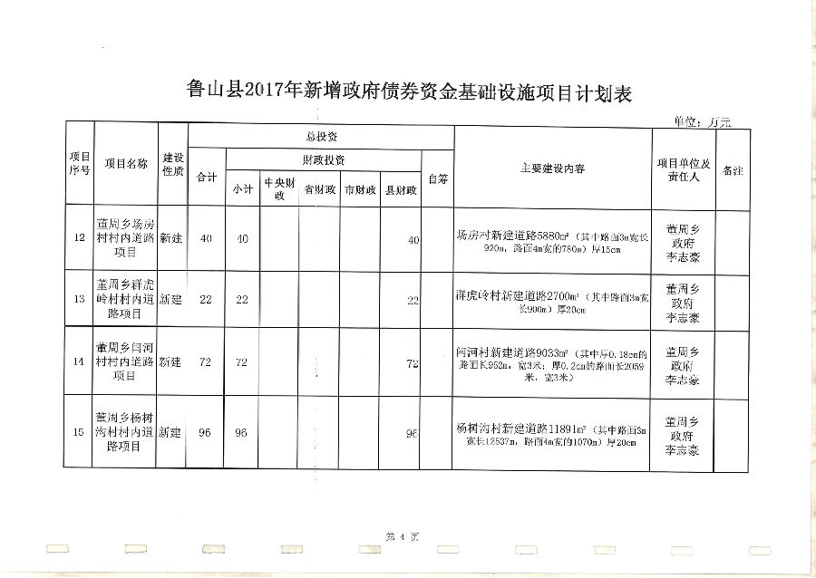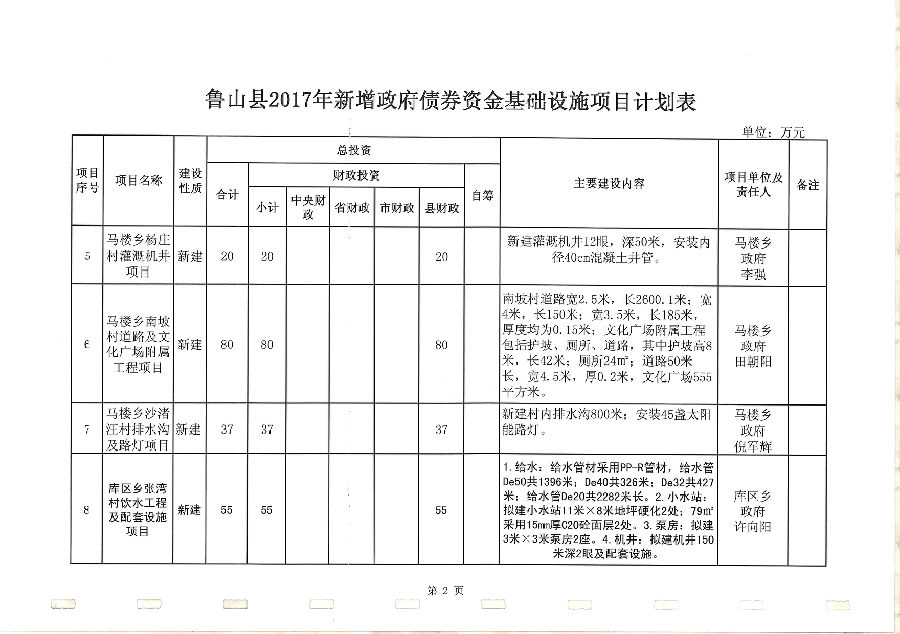 2017年新增政府债券资金基础设施项目实施方案批复的公示公告(四)