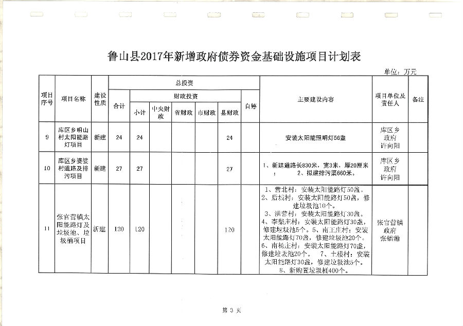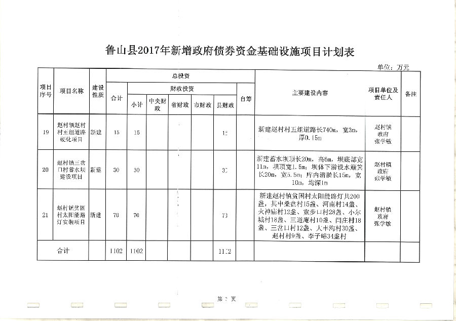2017年新增政府债券资金基础设施项目实施方案批复的公示公告(三)
